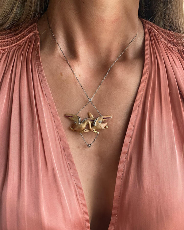 Art Nouveau Enamel and Diamond Swan Necklace in Platinum and 18K
