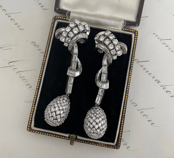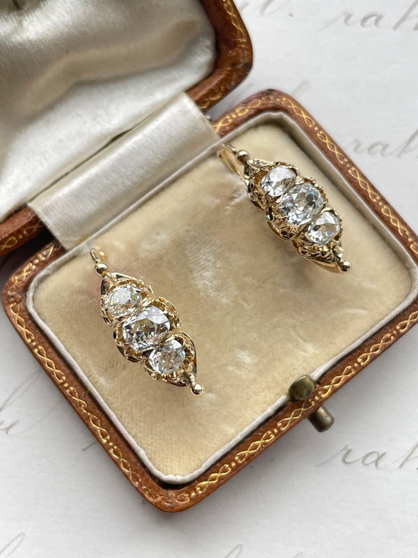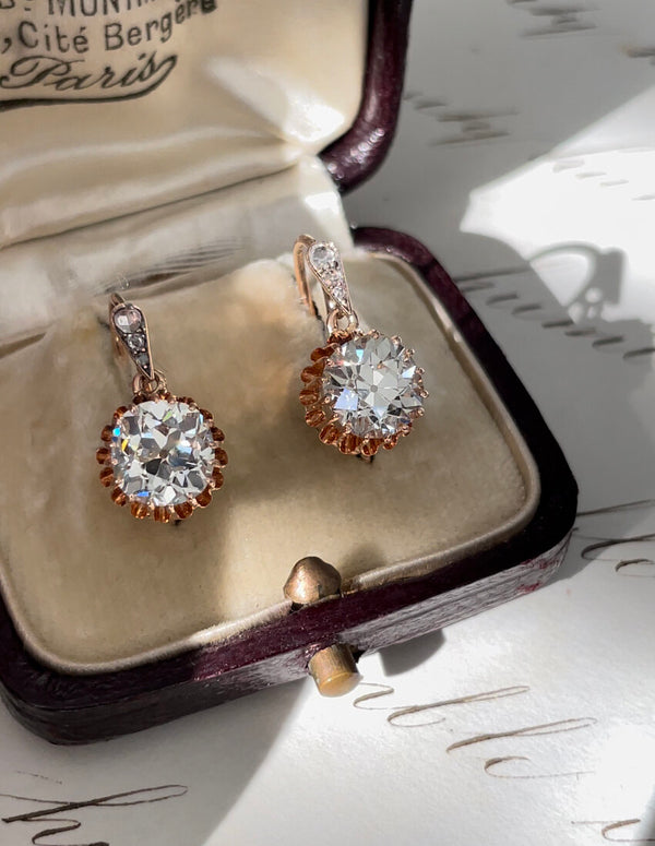 Antique 18K French Old Mine Cut Diamond Dormeuses Earrings - 3.06TCW