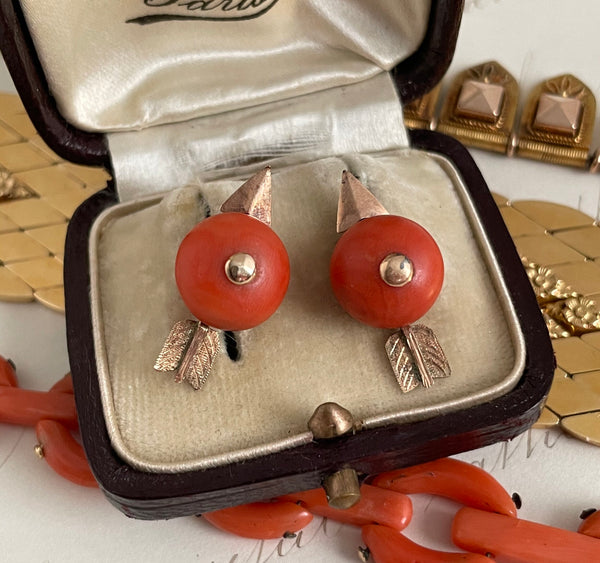 Georgian Boxed Set of 15K Garnet Day to Night Earrings and Stomacher