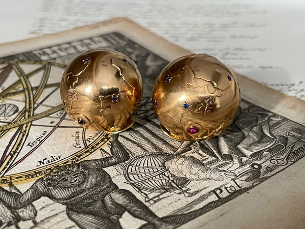 Retro 18k "Globe" Dome Earrings with Sapphires and Rubies
