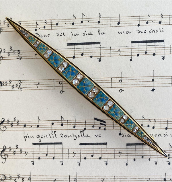 French Art Nouveau Enamel and Diamond Brooch by Henri Dubret
