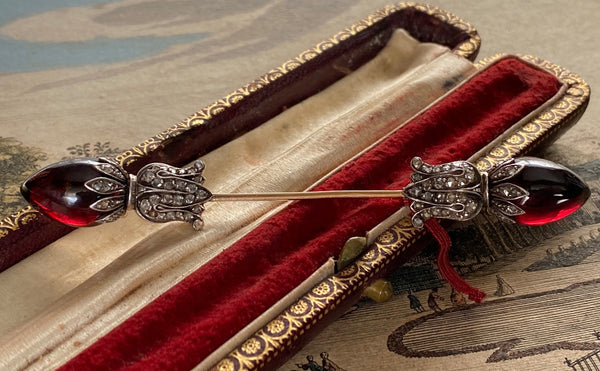 Late 19th C Garnet Carbuncle Jabot Pin