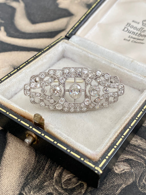 French Art Deco Platinum and Diamond Brooch