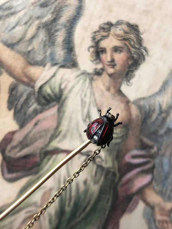 Antique French Guilloche Enamel Ladybug Stickpin