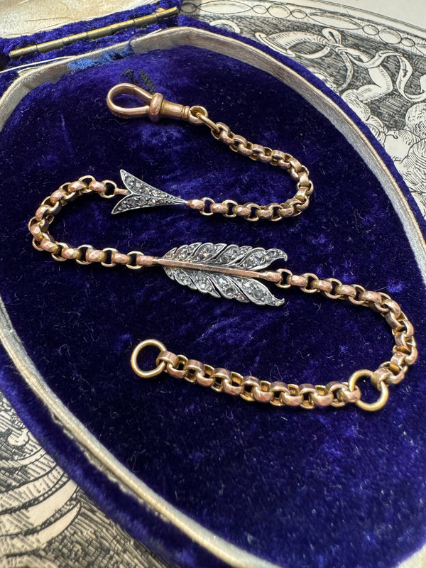 Antique 14K Fancy Link Novelty Watch Chain Bracelet with Moonstone and Diamond Eagle Head