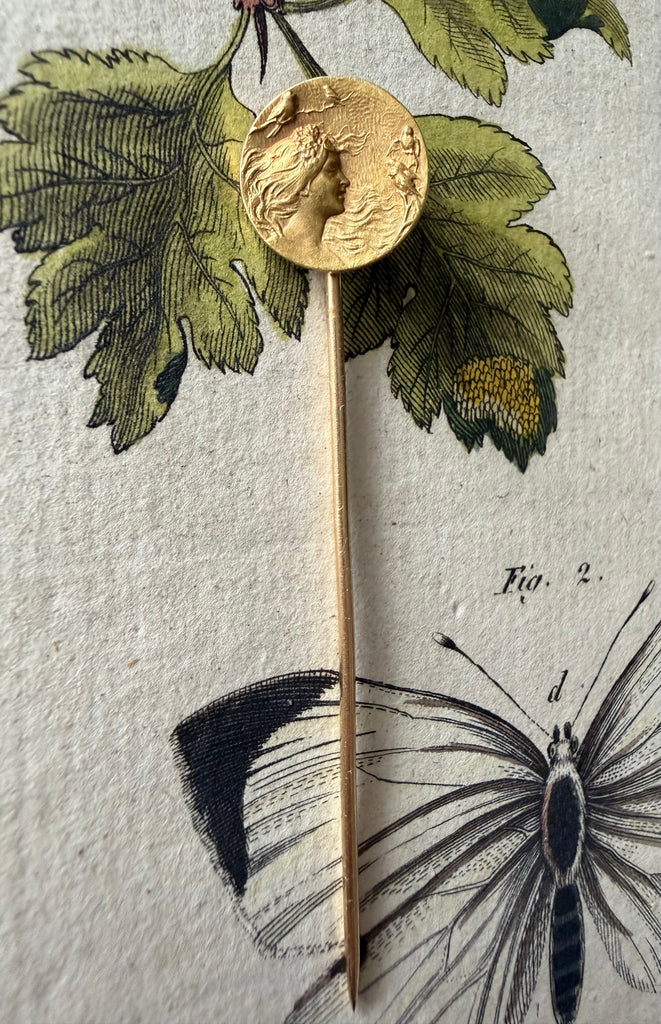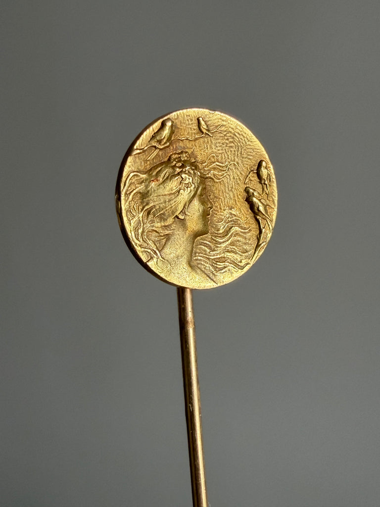 Antique Art Nouveau Lady with Birds Stickpin Krementz