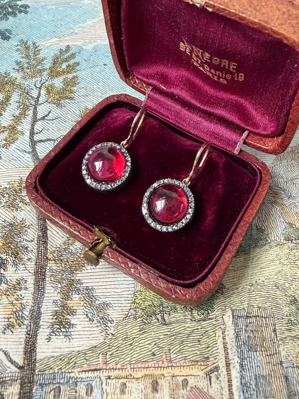 Victorian Cabochon Garnet and Rose Cut Diamond Conversion Earrings