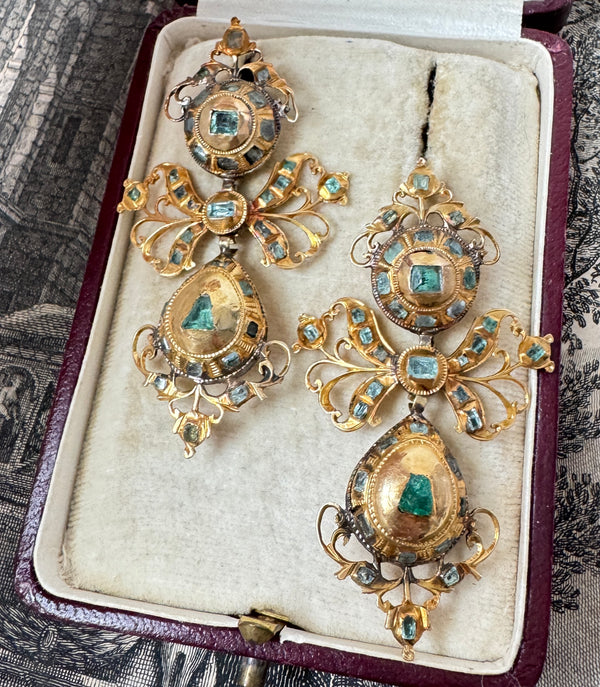 Reimagined Antique Rose Cut Diamond Drop Earrings