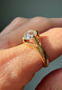 Accompanied by a GIA report stating VS2 clarity and J color. French import marks. Crafted in 18K gold. Currently ring size 7 1/2.